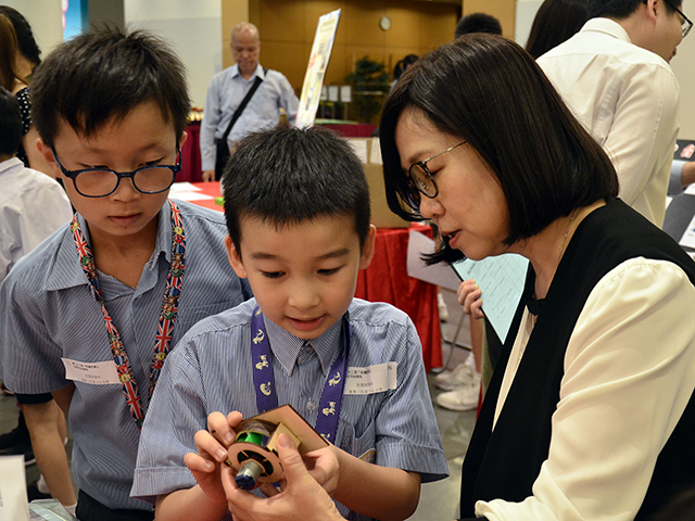 Professionals from various fields and dedicated science educators served as adjudicators of the Exhibition, including professionals from government education bodies in both Hong Kong and the Mainland, from the higher education sector, and from different educational organisations. The adjudicators selected the award winners in two categories: Adjudicator Awards and Outstanding Awards. The four participating schools that received Adjudicator Awards were HHCKLA Buddhist Ching Kok Lin Association School, Ying Wa Primary School, Shaukiwan Tsung Tsin School and Hong Kong Baptist Convention Primary School.