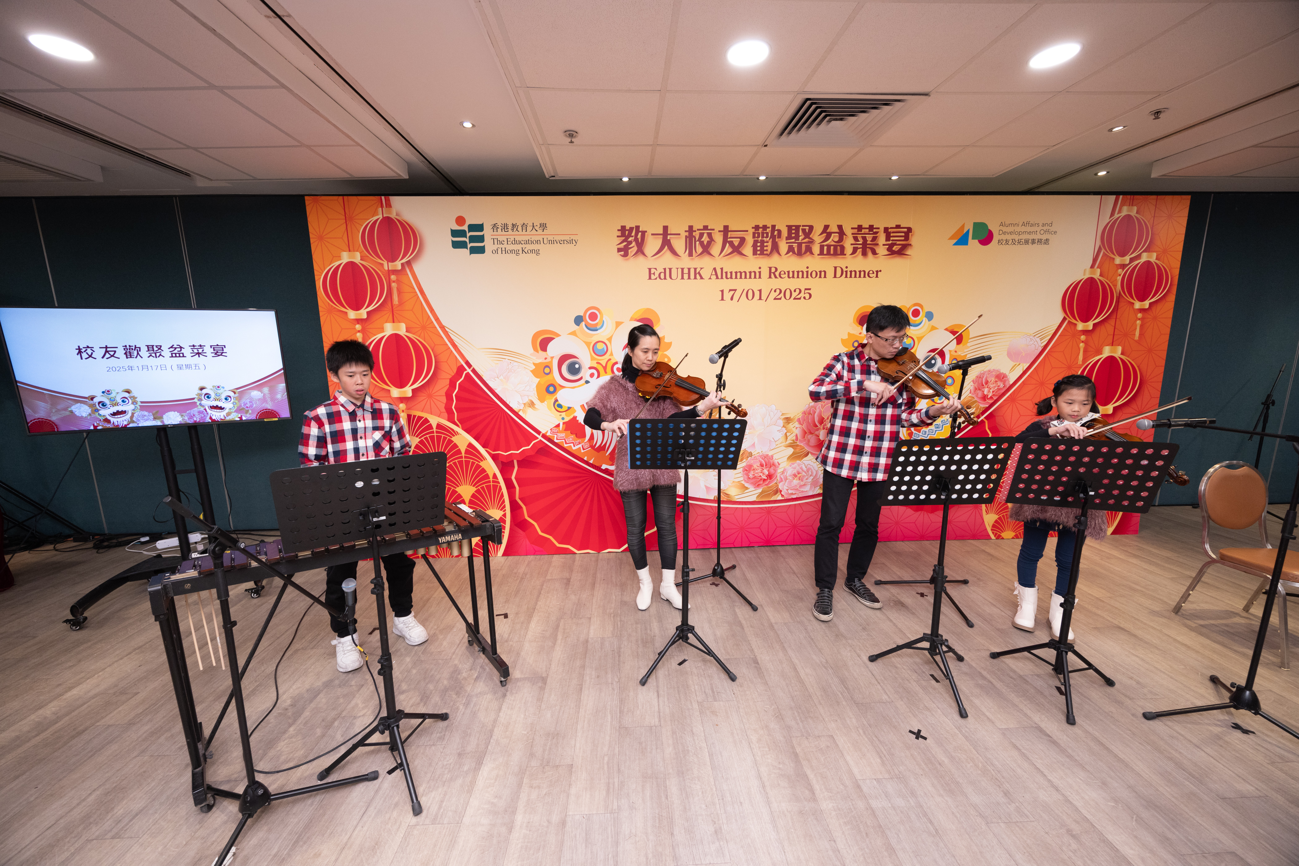 晚宴表演豐富多彩,有一連串精彩樂器演奏,包括陳應恬女士與家人合奏的「室樂四重奏」;而身兼教大內地校友會秘書長及香港廣東音樂團藝術總監及團長的著名胡琴演奏家曾秋堅先生,則以二胡演奏《新賽馬》一曲。節目表演期間氣氛歡樂,校友情誼濃濃。