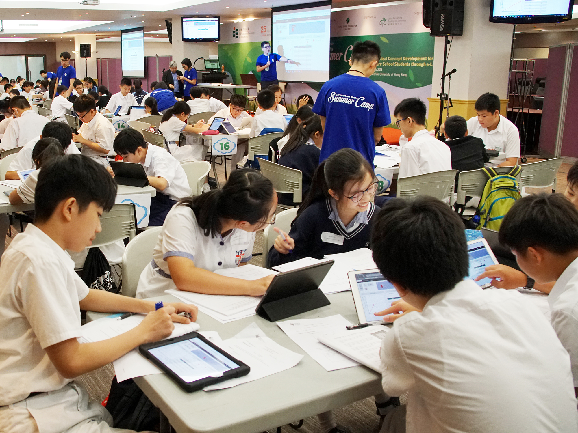 參與今年夏令營的師生分別來自基督教香港信義會元朗信義中學、沙田官立中學、筲箕灣官立中學、聖公會聖馬利亞堂莫慶堯中學及聖公會曾肇添中學。「基石數學」平台結合資訊及通訊科技,透過視覺化及具互動元素的介面,包括圖像、互動圖表及公式,讓學生可學習線性函數這個重要的數學概念。參與夏令營的人士在教大學生的帶領及指導下,親身感受「基石數學」平台的學習樂趣。