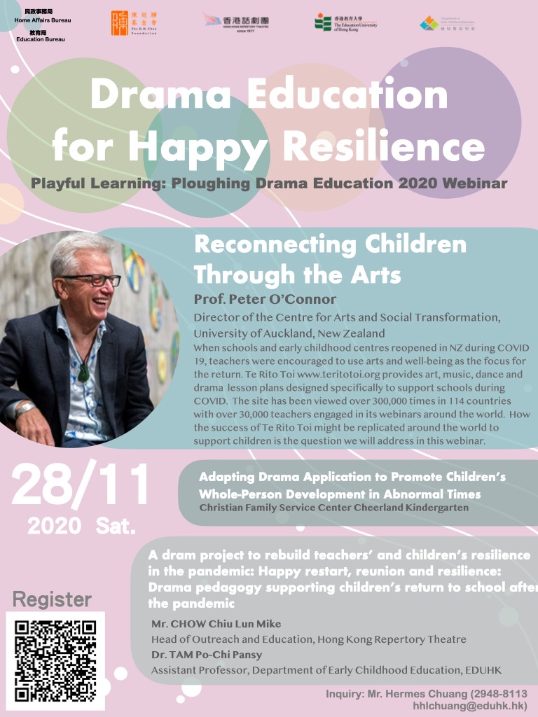由陳廷驊基金會支持的「戲有益:深耕計劃」將於2020年11月28日舉辦網上研討會,探討疫情下藝術教育對幼兒保持身心健康及全人發展的重要性。詳情如下: