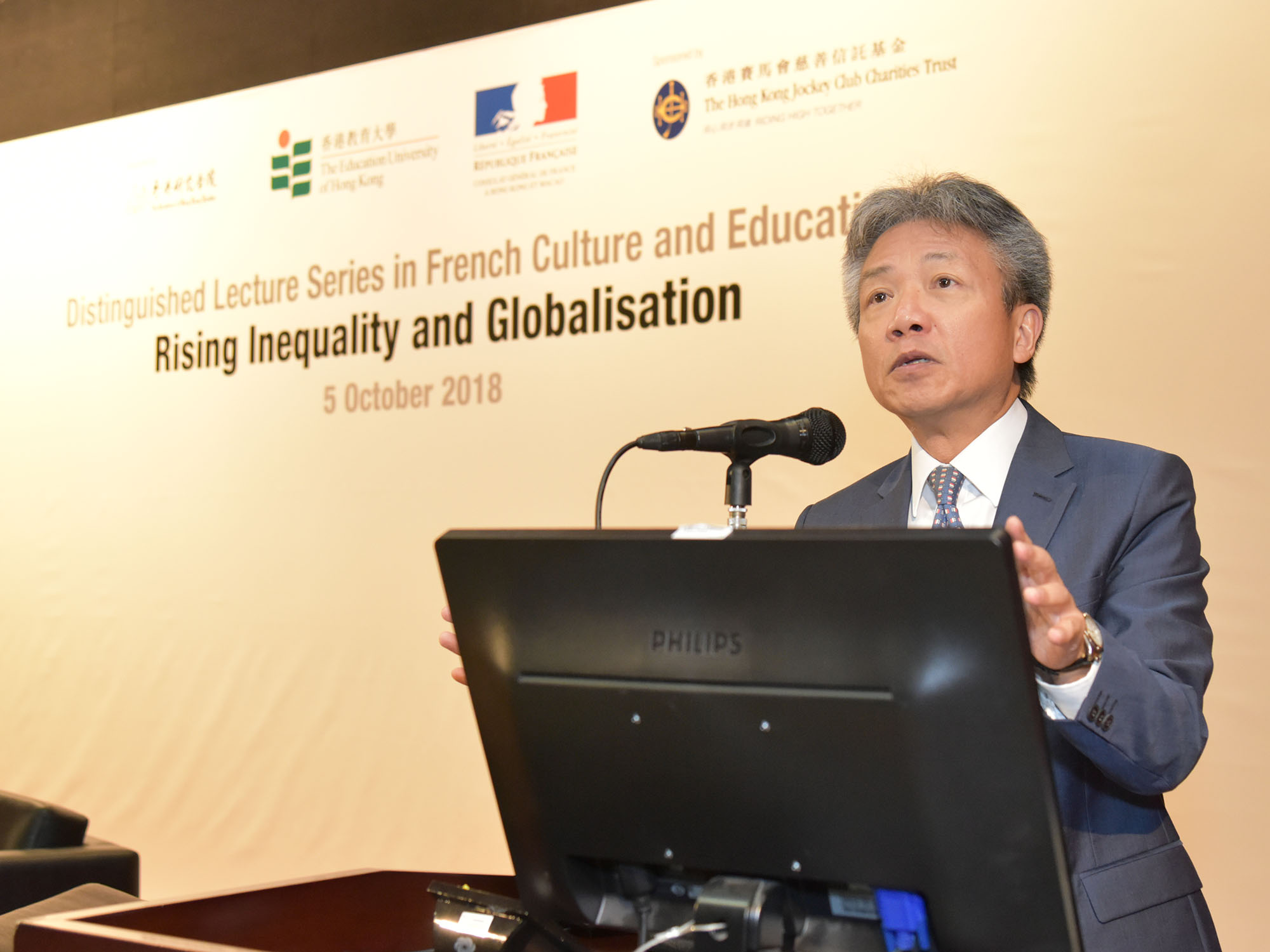 Professor Piketty’s talk kicked off EdUHK’s Distinguished Lecture Series in French Culture and Education organised jointly with the French Consulate-General. This high-level talk was sponsored by The Hong Kong Jockey Club Charities Trust.