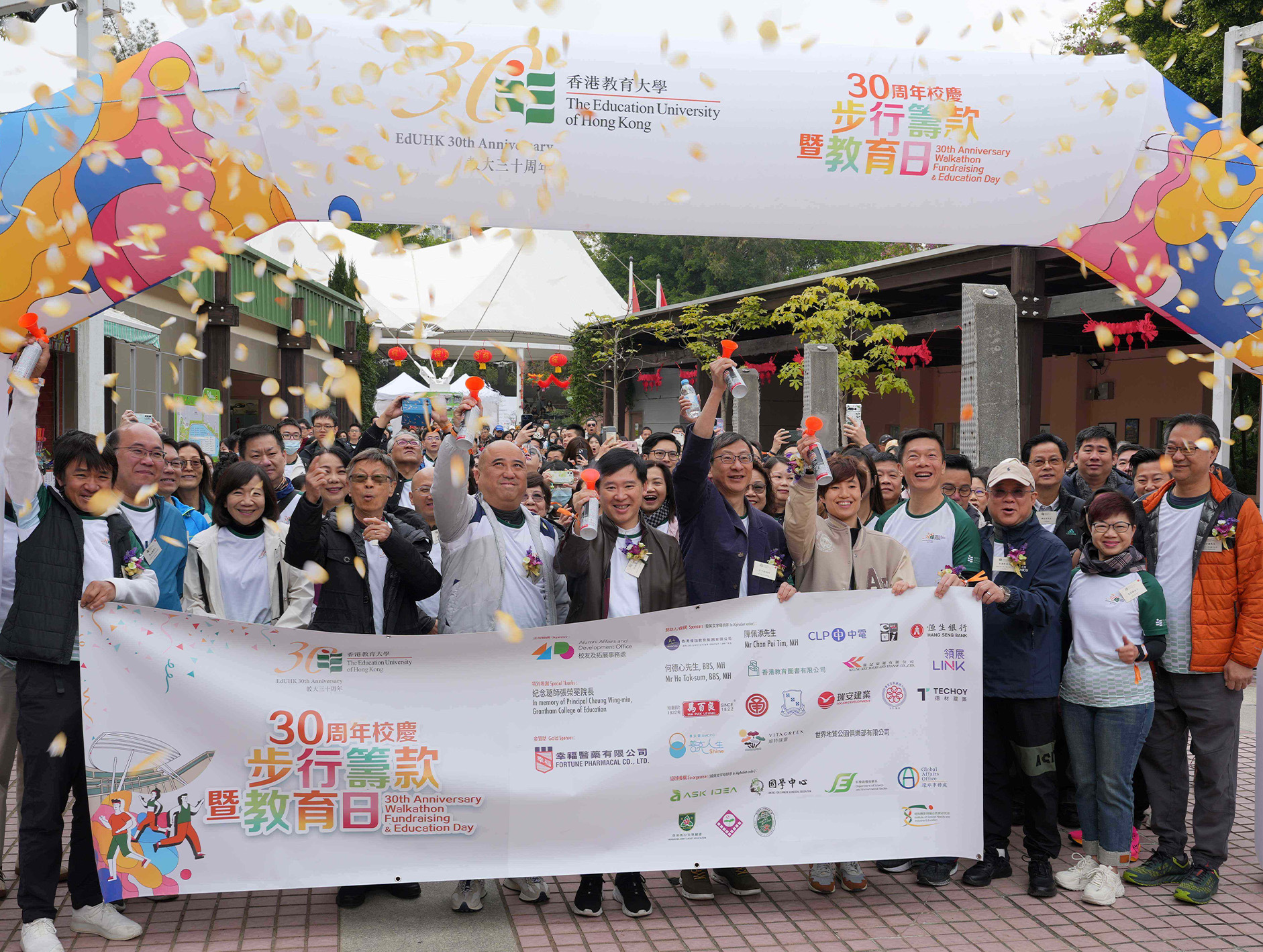 The Education University of Hong Kong (EdUHK) held the 30th Anniversary Walkathon Fundraising & Education Day on 27 January 2024, with around 1,000 people taking part, including EdUHK staff, students, alumni, primary and secondary school teachers and students, enterprises and members of the general public. The aim of the event was to support the development of EdUHK, and education projects on teacher morality training, STEAM education and SEN education.