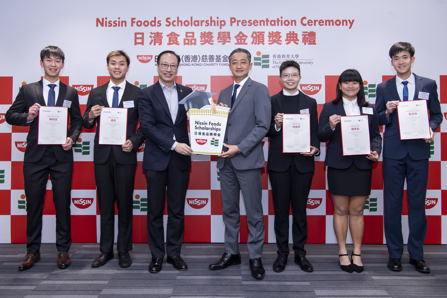 The Education University of Hong Kong (EdUHK) and the Nissin Foods (Hong Kong) Charity Fund held a Presentation Ceremony on 18 February 2025 for the Nissin Foods (Hong Kong) Charity Fund Scholarship 2024/2025. The ceremony awarded full scholarships to seven outstanding EdUHK elite athletes who not only excel in their sports but also aspire to become future educators. The scholarship will cover their full tuition fees throughout their study period, so they can focus on their studies without worrying about their financial burden.