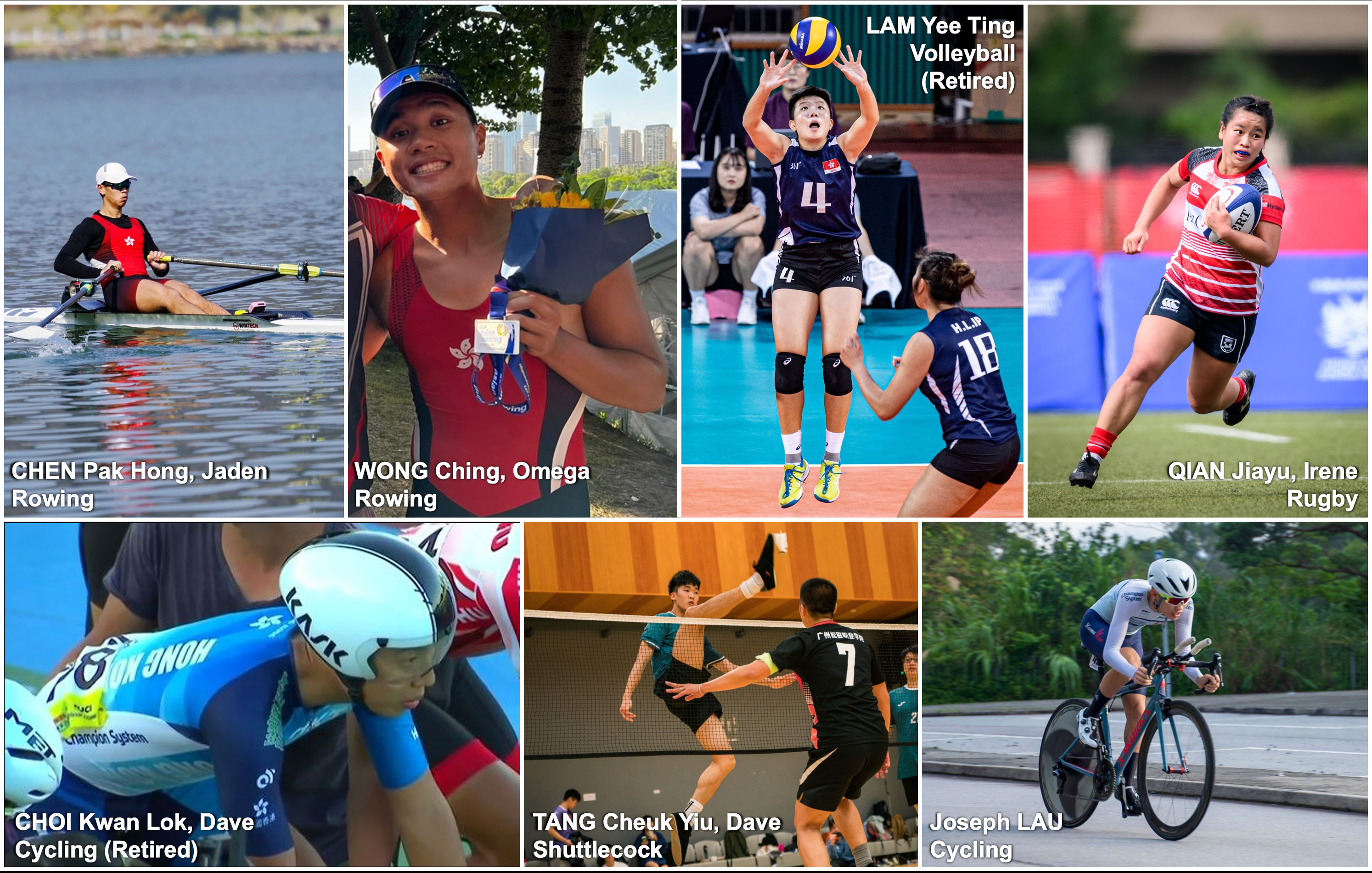 The four new awardees for the 2024/25 academic year are Chen Pak-hong (rowing), Wong Ching (rowing), Lam Yee-ting (volleyball, retired) and Qian Jiayu (rugby). In addition to providing support to new awardees, the Charity Fund also made the scholarship renewable to support the elite athletes throughout their study period. The three recipients of the renewed scholarship are Choi Kwan-lok (cycling, retired), Tang Cheuk-yiu (shuttlecock) and Joseph Lau (cycling).