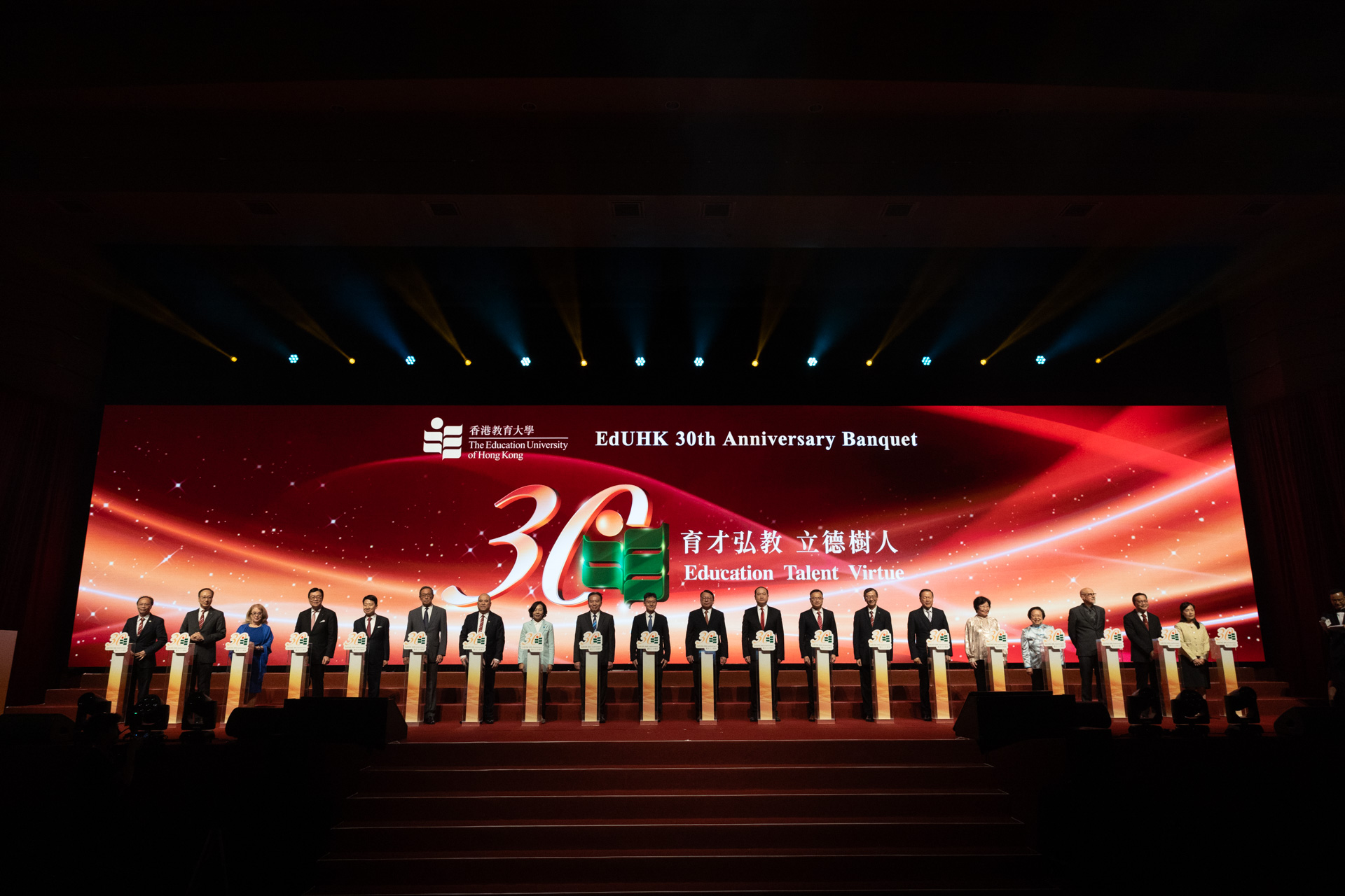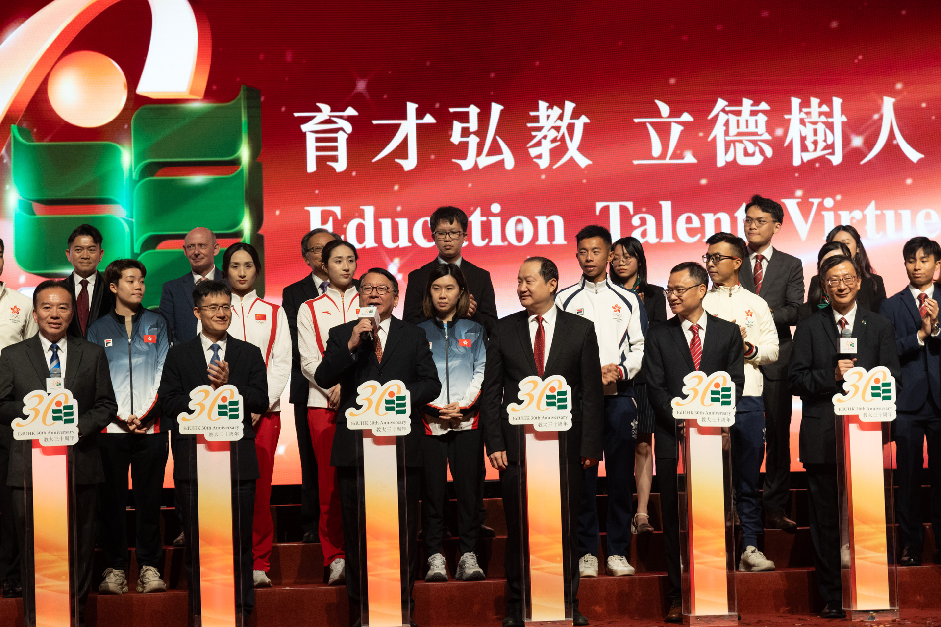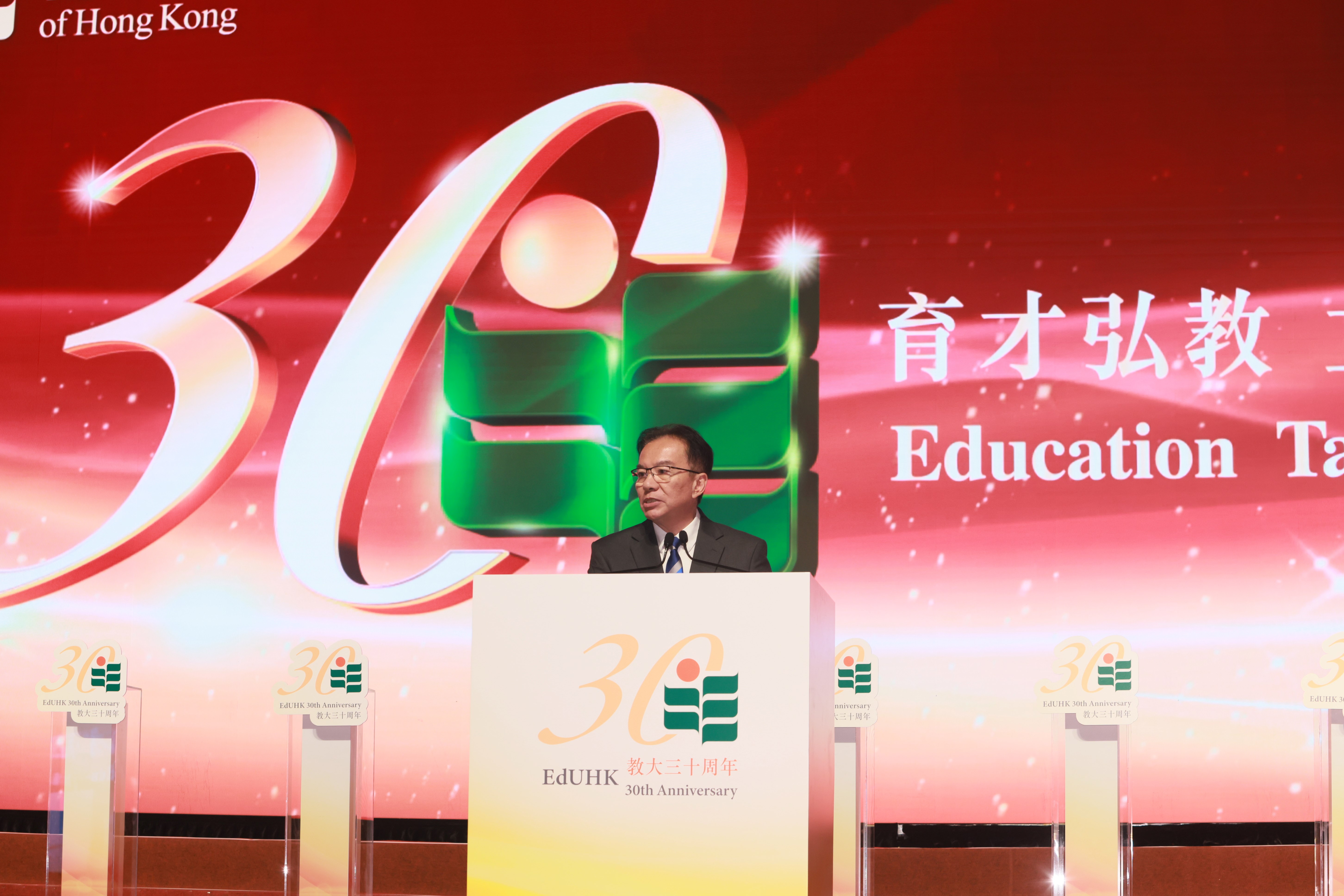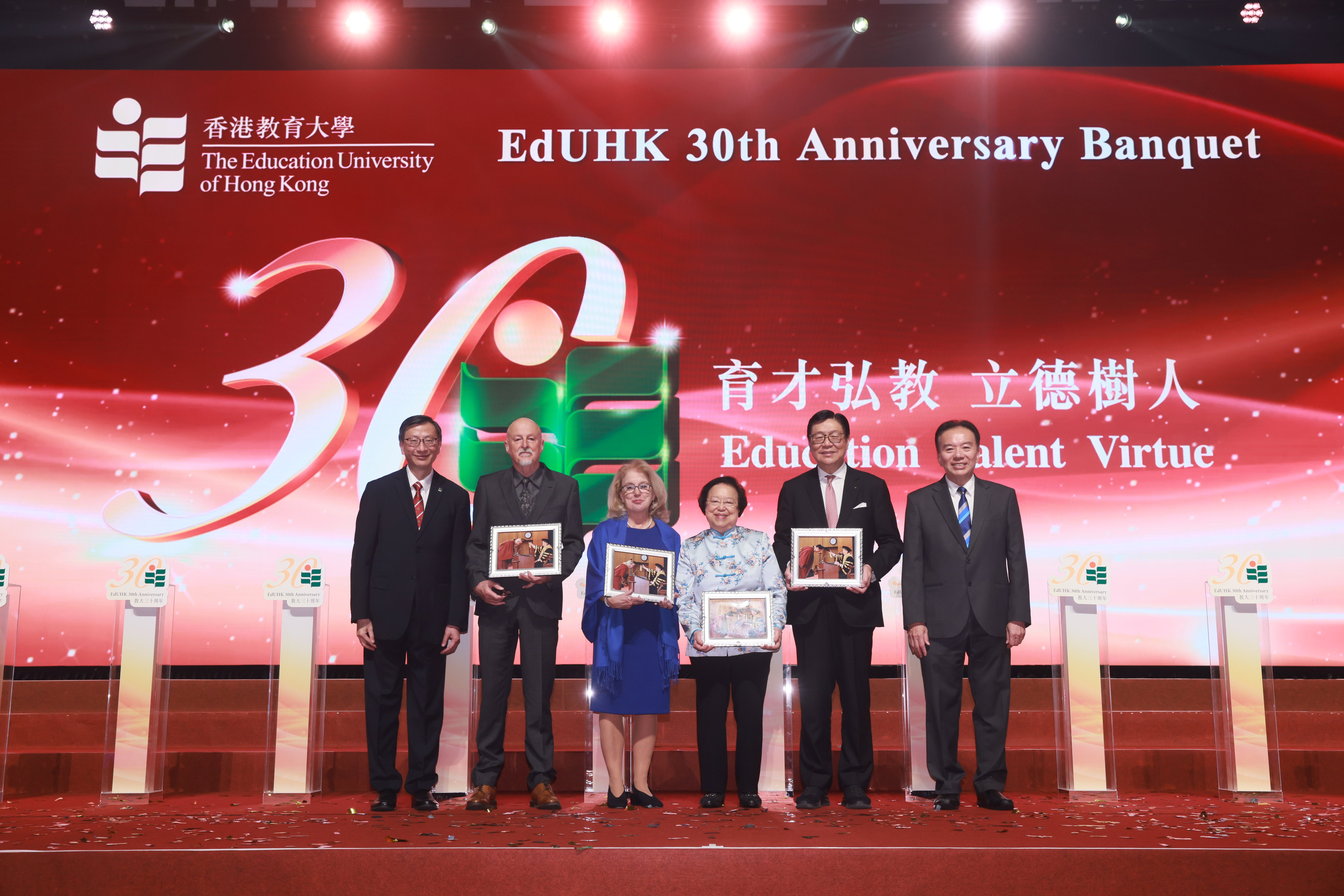 To celebrate the 30th Anniversary of The Education University of Hong Kong (EdUHK), a gala dinner was held on 23 November 2024 at the Hong Kong Convention and Exhibition Centre. The event was attended by distinguished guests including representatives from the Government of the Hong Kong Special Administrative Region (HKSAR Government), the Liaison Office of the Central People’s Government in the HKSAR (LOCPG), the Office of the Commissioner of the Ministry of Foreign Affairs of the PRC in HKSAR (OCMFA), the Office for Safeguarding National Security of the Central People’s Government (OSNS) in the HKSAR, experts from the education sector, dignitaries and friends, as well as EdUHK Council members, senior management, faculty, students, and alumni. Around 2,000 guests gathered to celebrate EdUHK’s 30 years of achievements and to look forward to an exciting future.