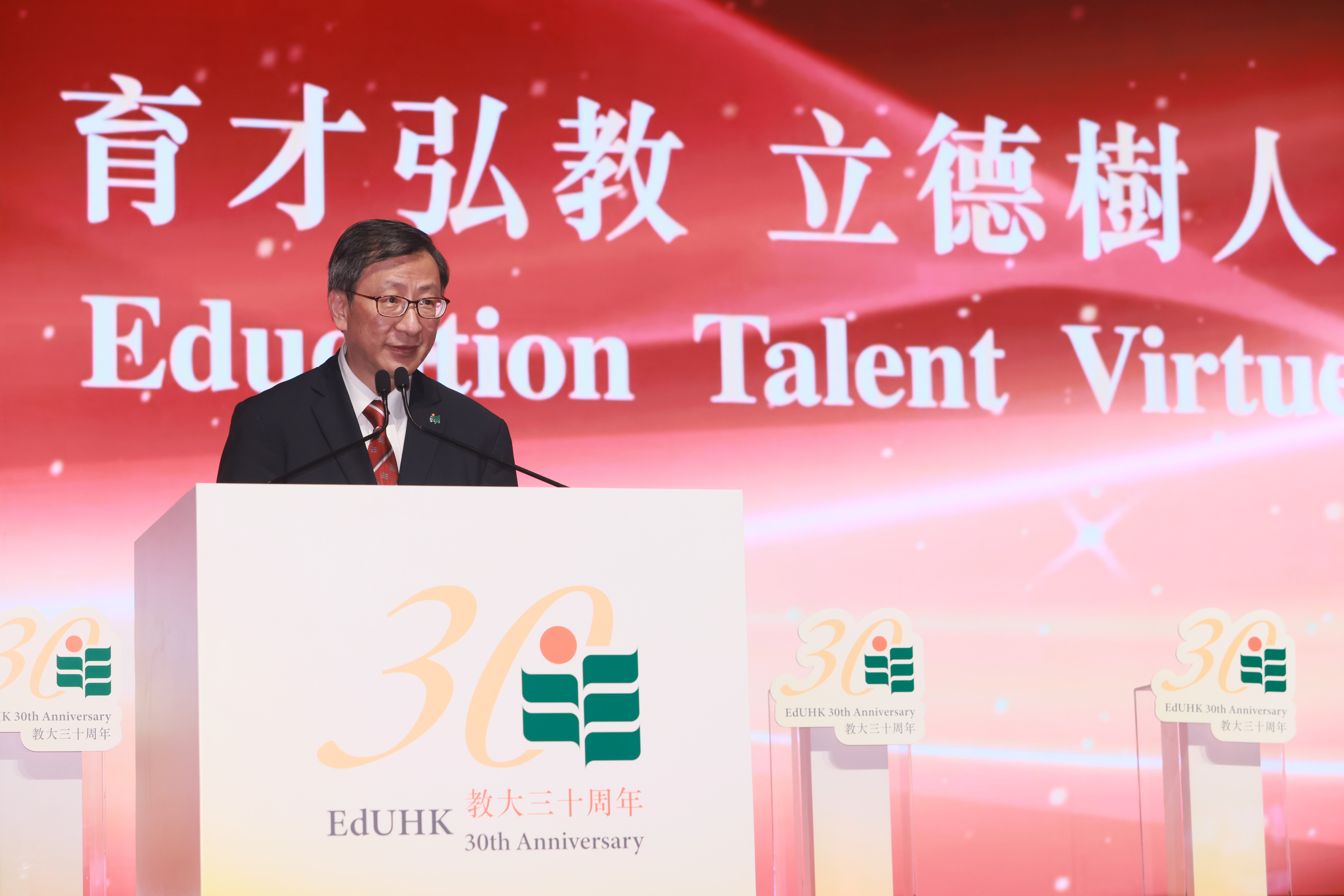 In his welcome speech, Council Chairman Dr David Wong Yau-kar extended a warm welcome to guests attending the 30th Anniversary Gala Dinner. He said, “Over the past three decades, EdUHK has dedicated itself to being a leader in education, ensuring that our graduates emerge as exceptional and ethically responsible educators and professionals. We support them in lifelong learning and equip them to meet the challenges of a rapidly changing world.” Looking ahead to the next decade, he said that EdUHK would continue to strive for academic excellence, enhance its research capabilities, expand partnerships in the Greater Bay Area, Mainland China and beyond. He added that EdUHK is increasing integrating technology into its teaching methodologies, while continuing to cultivate outstanding and responsible teachers and professionals for society. This commitment aims to help develop Hong Kong as an international education hub and to support the latest policy initiative to establish the ‘Study in Hong Kong’ brand.