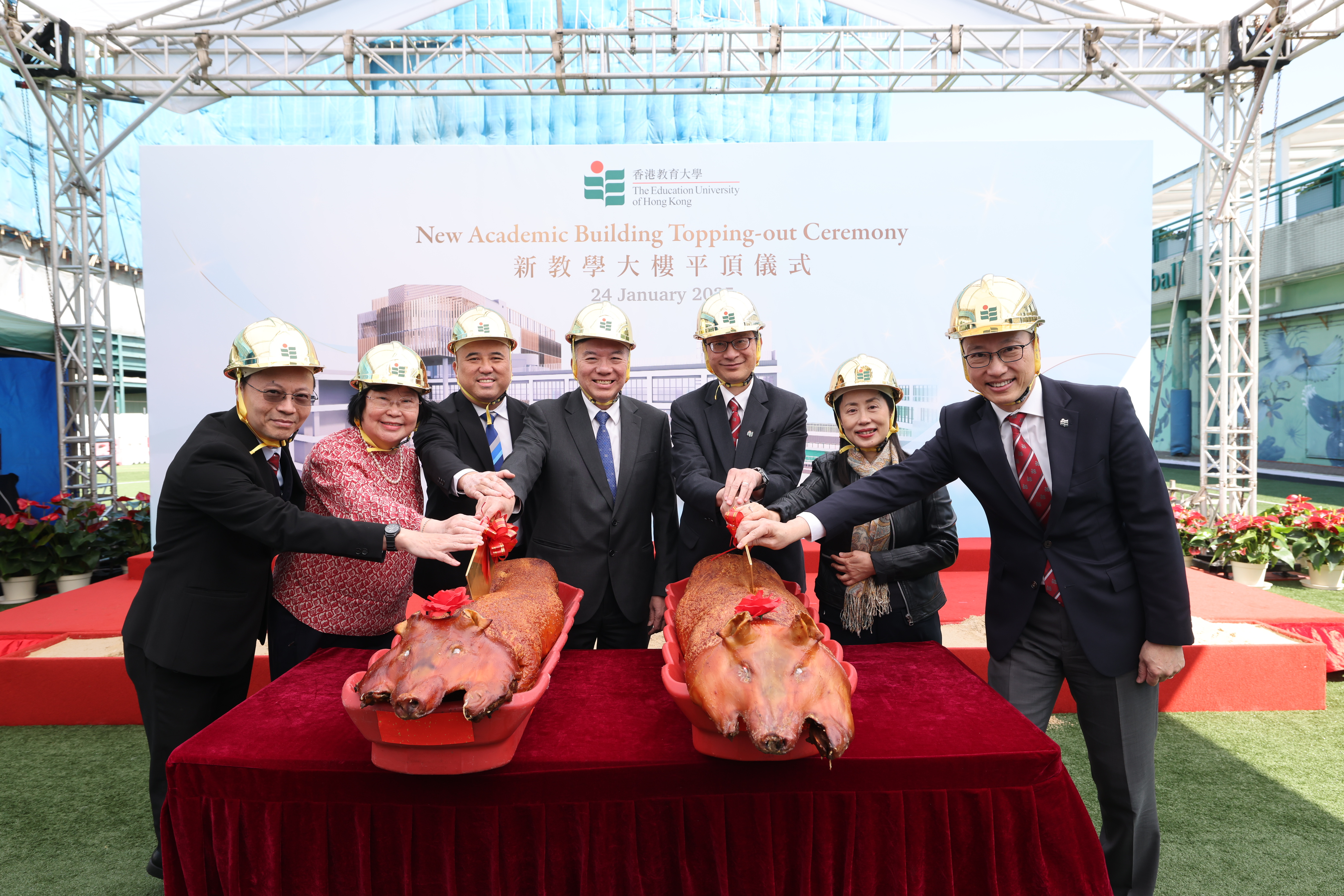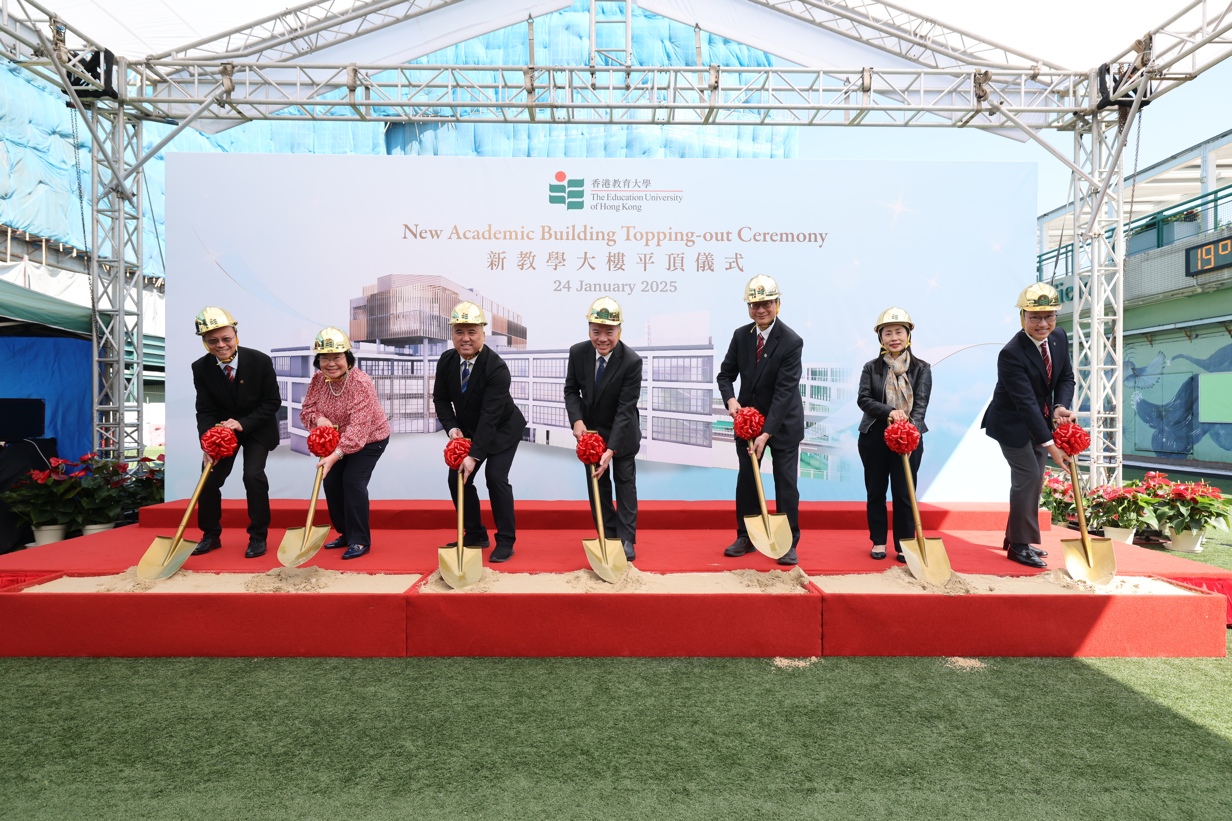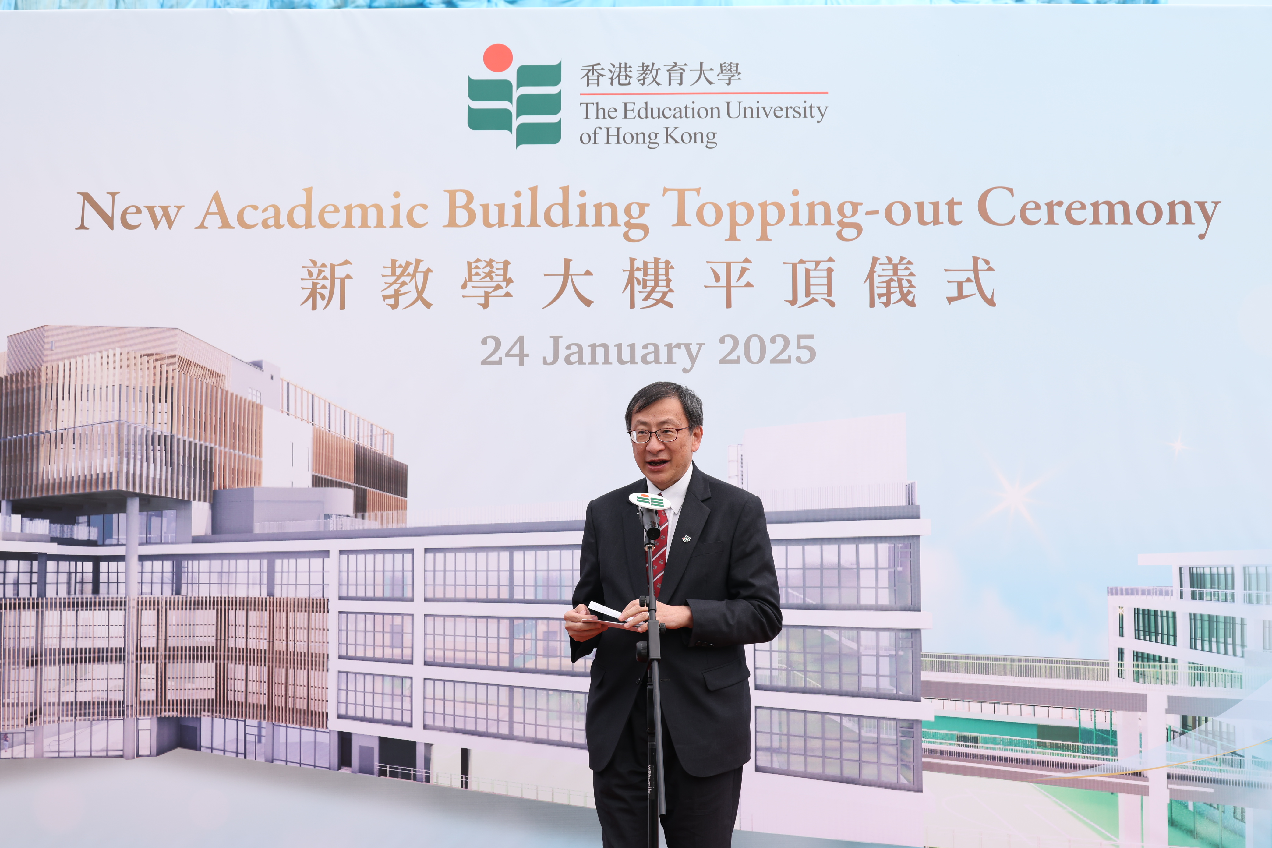 The Education University of Hong Kong (EdUHK) held a topping-out ceremony for the New Academic Building on 24 January 2025 on its Tai Po campus, marking a new milestone in the development of the University. The new building will incorporate technological applications for “Education Futures”, focusing on advancing fields such as STEM and AI education. This further enhances EdUHK’s role in driving educational innovation and preparing for diversified opportunities to take the University to new heights.