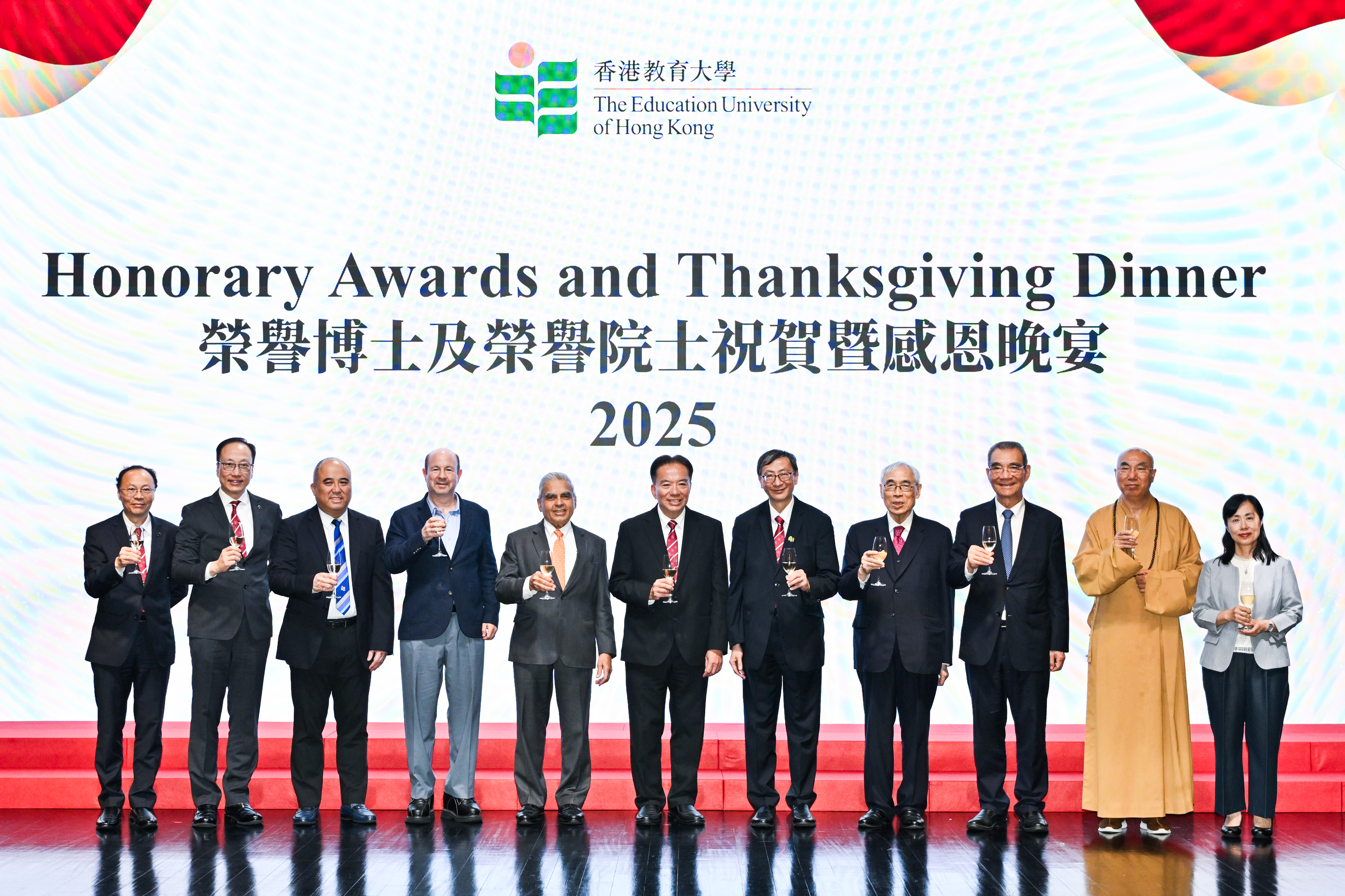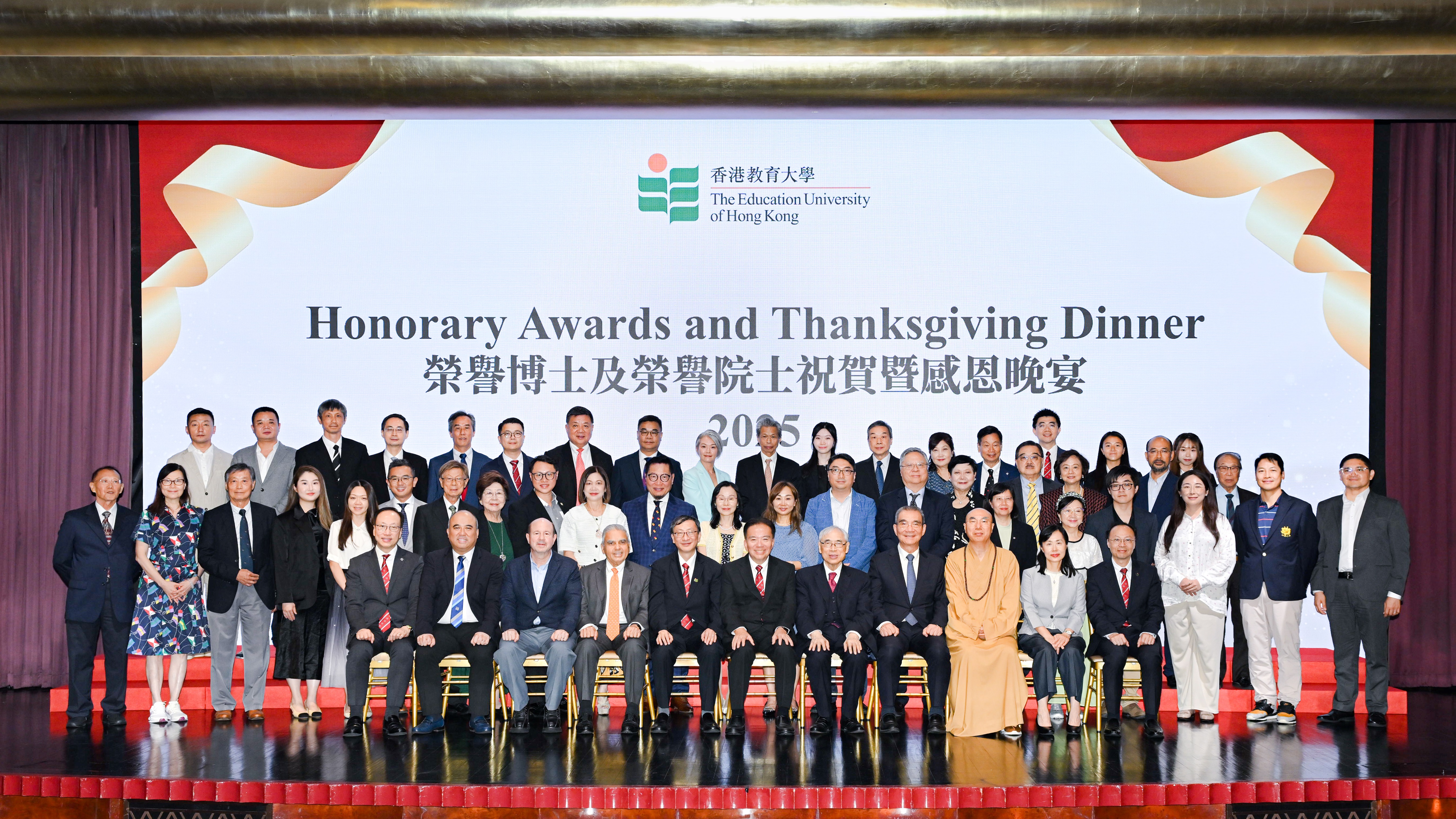 The Education University of Hong Kong (EdUHK) hosted the Honorary Awards and Thanksgiving Dinner at the Grand Hyatt Hong Kong on 26 September 2025. The event aimed to express heartfelt appreciation to benefactors, alumni, and partners for their steadfast support of the University’s mission, while also recognising outstanding scholarship recipients.