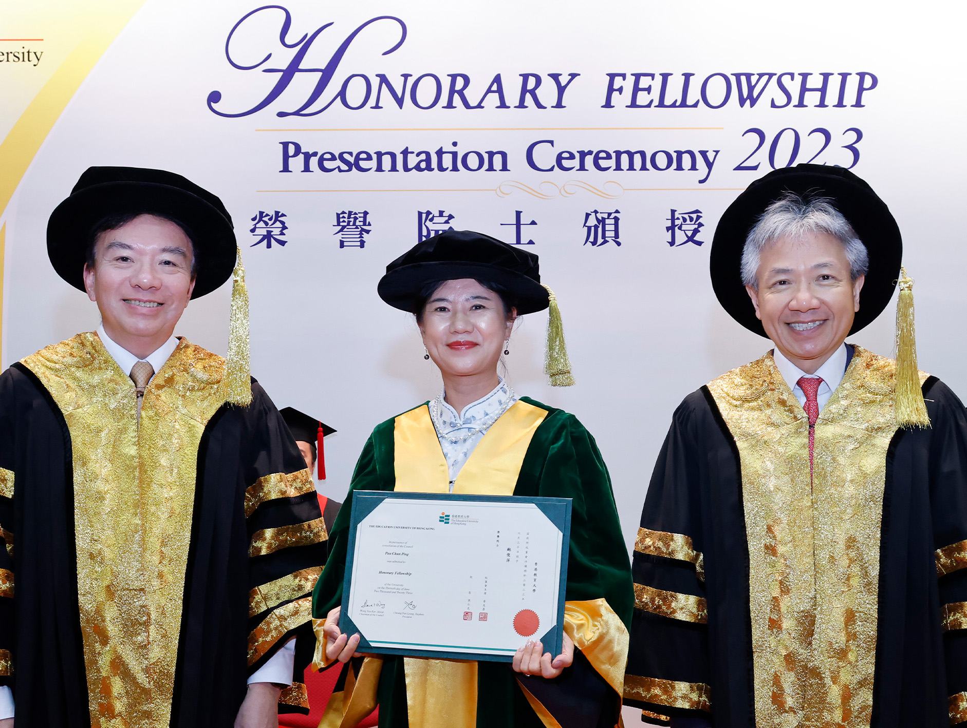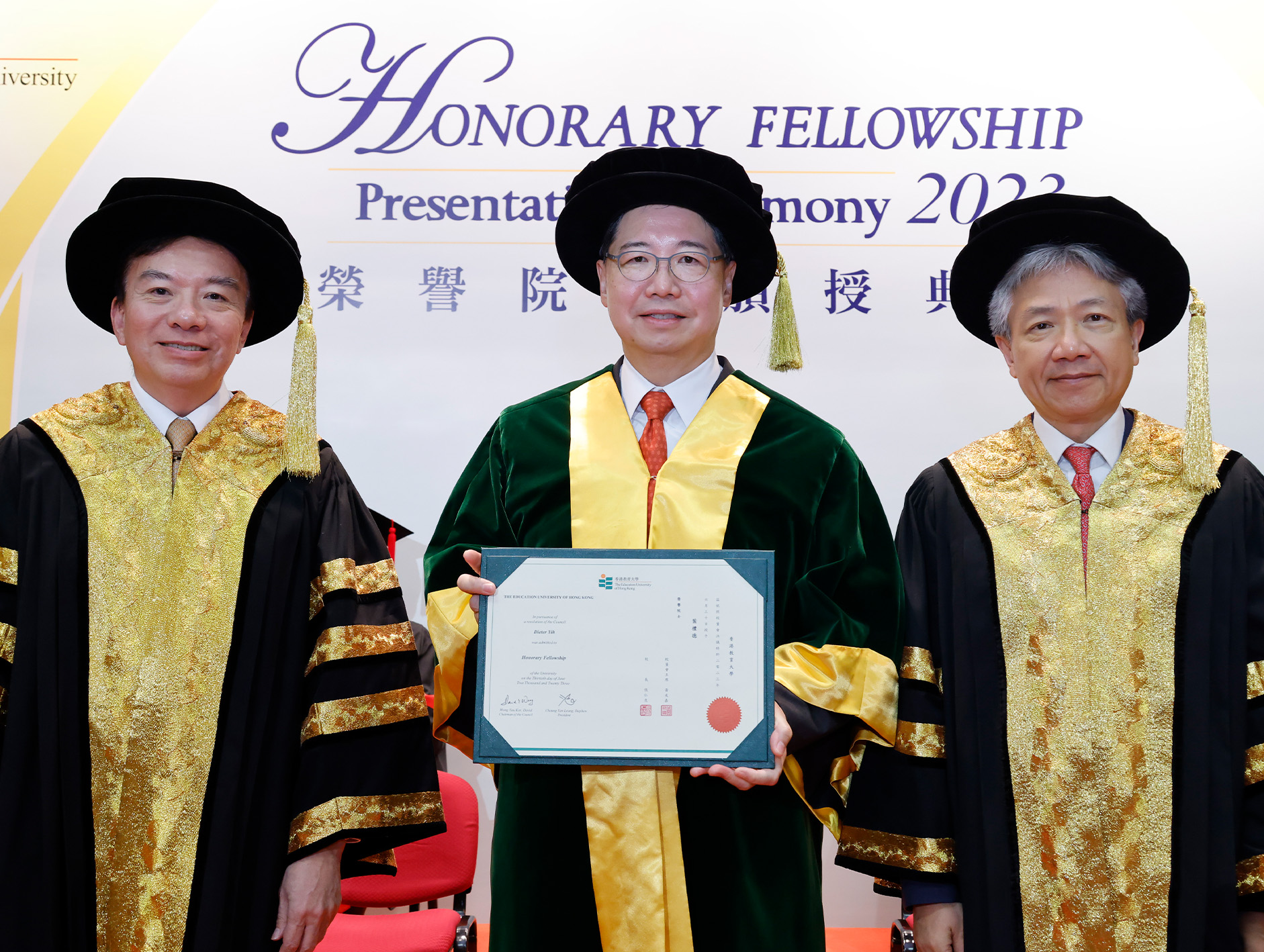 EdUHK Council Chairman Dr David Wong Yau-kar presided over the Honorary Fellowship Presentation Ceremony, which was held on the Tai Po campus on 30 June 2023.