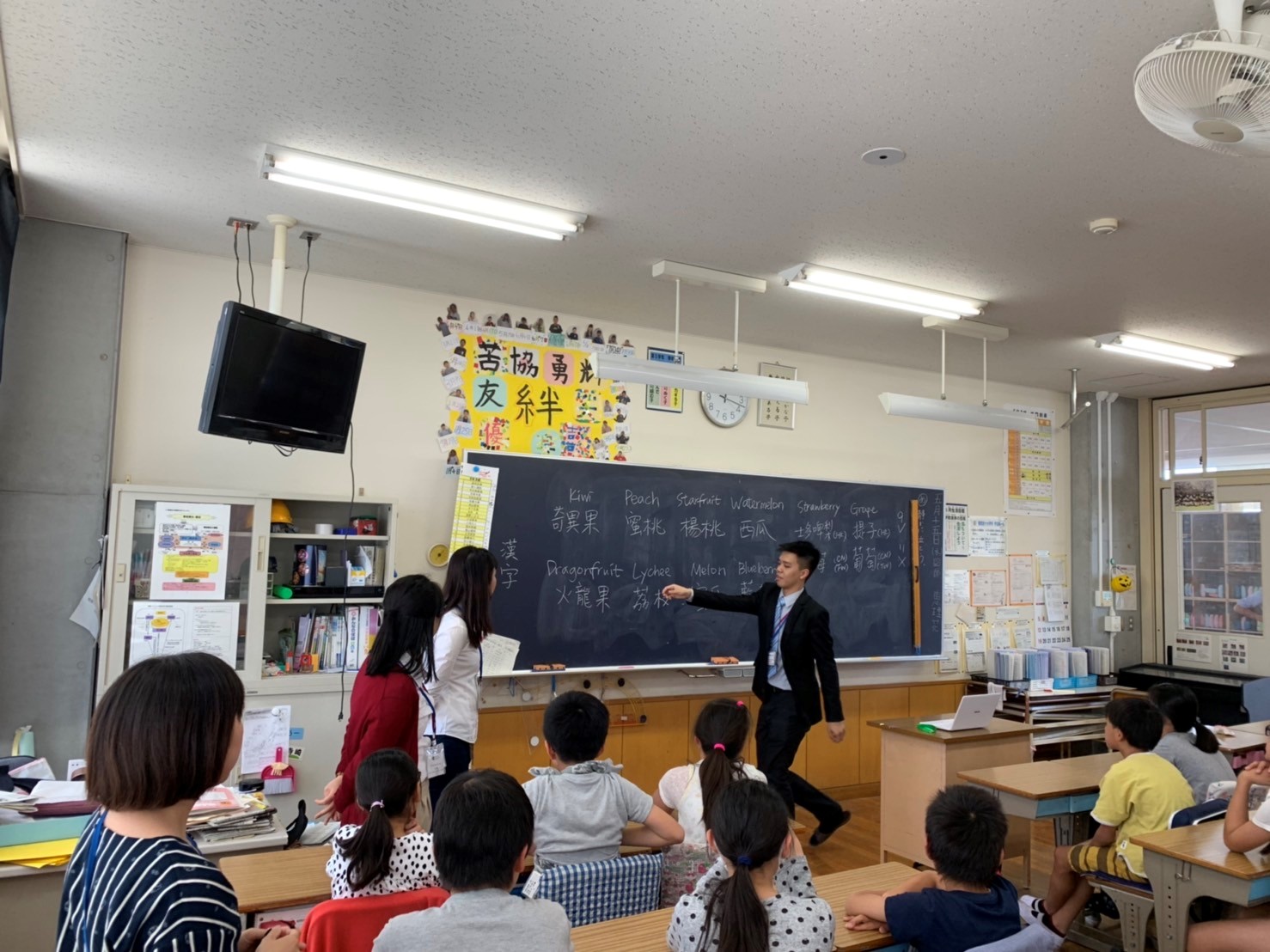 In a Japanese primary school classroom, a student teacher was making the most of his first experience teaching English to local students. To attract students’ attention and capture their learning interest, he made use of different visuals, engaging the students as far as practicable with verbal cues, body language and even song-and-dance performances.