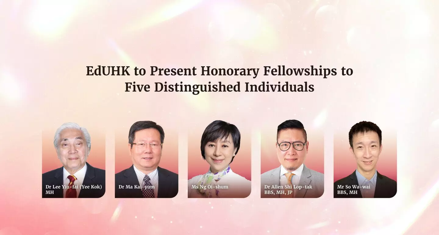 The Education University of Hong Kong (EdUHK) will present Honorary Fellowships to five distinguished individuals this year, in recognition of their remarkable contributions to the University, the education sector and the wider community.