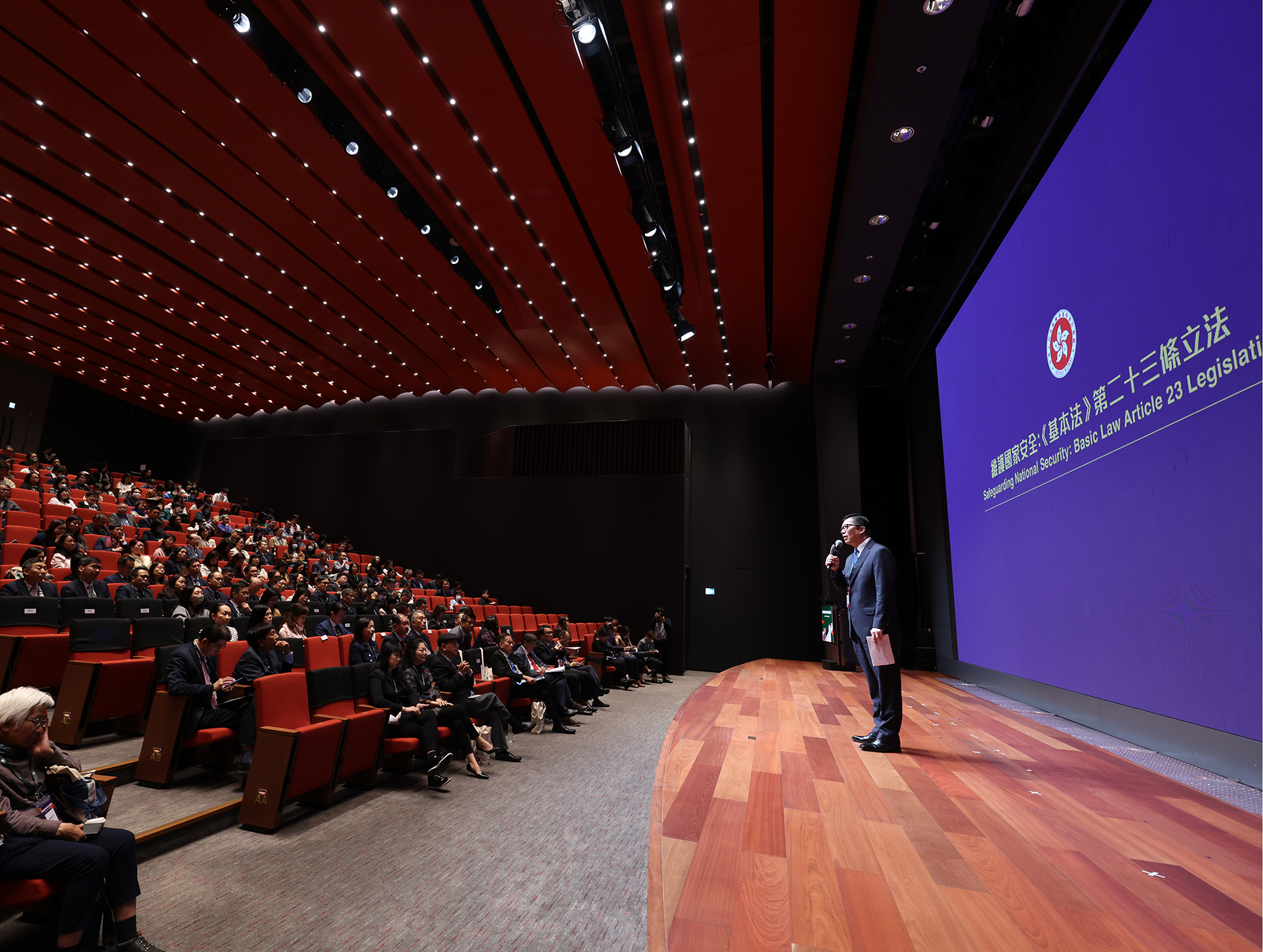 Secretary for Security Mr Chris Tang Ping-keung and Professor Lee Chack-fan, Director of Jao Tsung-I Petite Ecole at the University of Hong Kong and member of the Chinese Academy of Engineering, delivered keynote speeches on the topics ‘Rule of Law and National Security Education – Safeguarding National Security: Basic Law Article 23 Legislation’ and ‘Chinese Cultural Education and Values – Inheritance of Values and Cultures’, respectively.