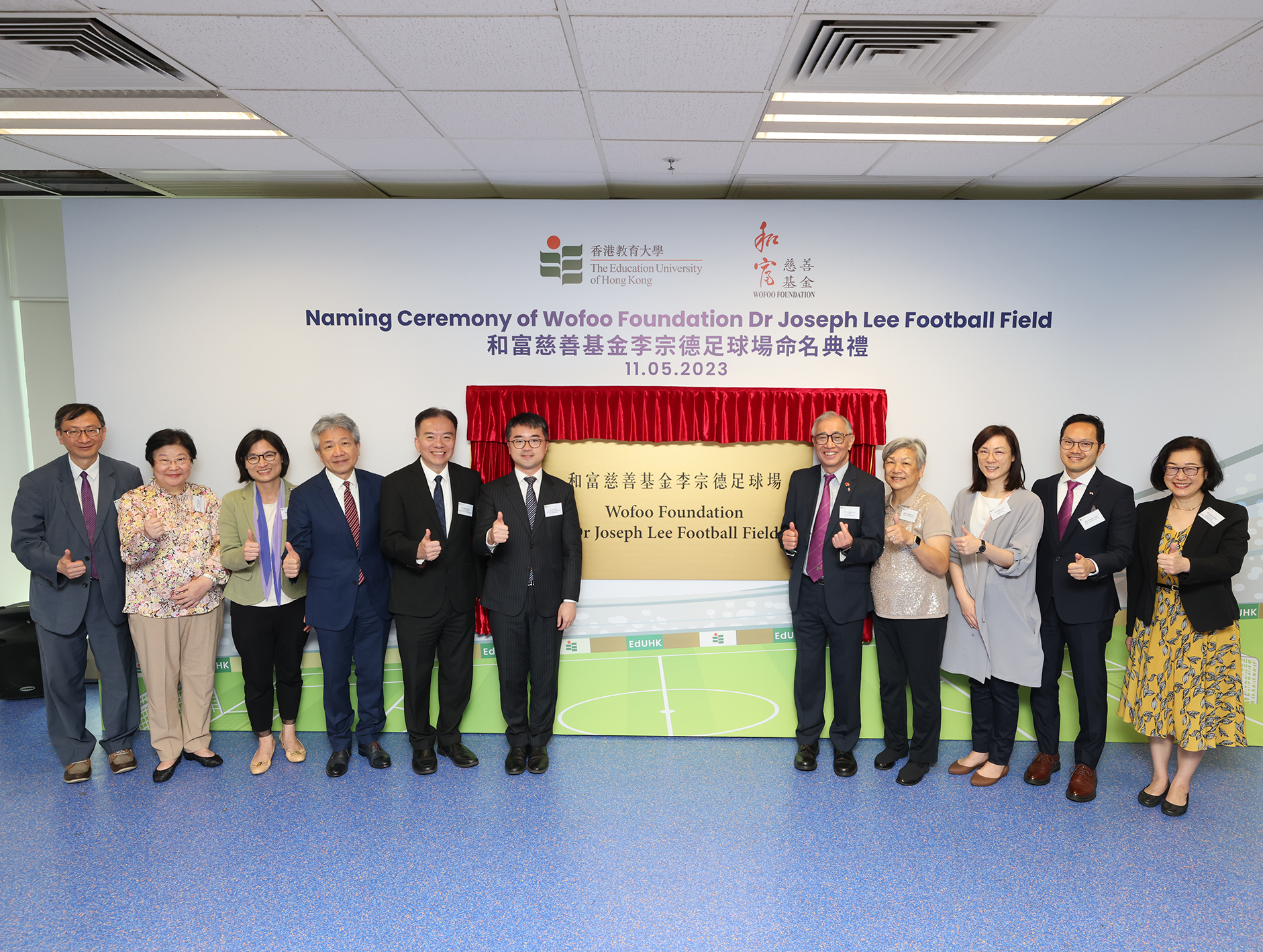 The Education University of Hong Kong (EdUHK) held a ceremony on 11 May 2023 to mark the naming of its football field on the Tai Po Campus as ‘Wofoo Foundation Dr Joseph Lee Football Field’, in recognition of Wofoo Foundation Chairman and Honorary Patron of The EdUHK Foundation Dr Joseph Lee Chung-tak’s unwavering support for the University.